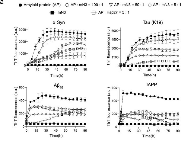图1 mN3抑制多种病理淀粉样蛋白的聚集