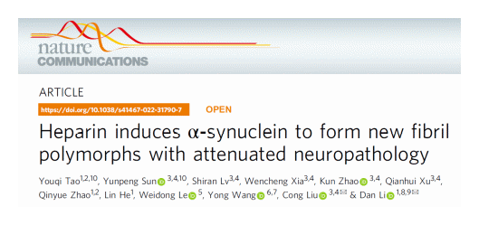 Nature Communications | 刘聪与合作者揭示糖胺聚糖调控帕金森病致病蛋白α-syn聚集的分子机制
