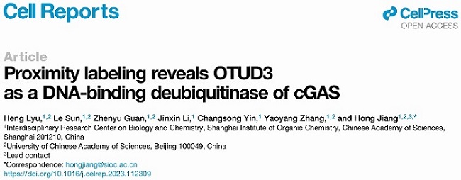 Cell Reports | 蒋洪课题组发现OTUD3是具有DNA结合能力的cGAS去泛素酶