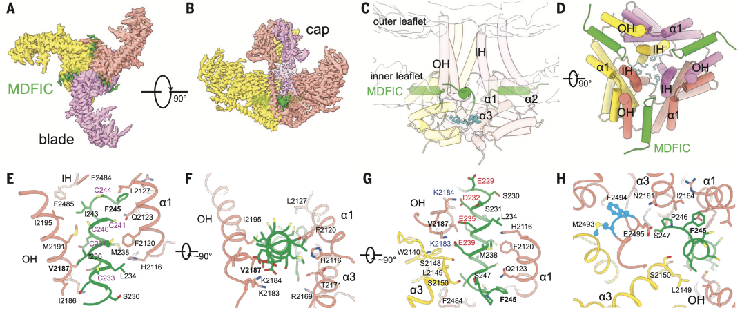 图2. Piezo1-MDFIC冷冻电镜三维结构
