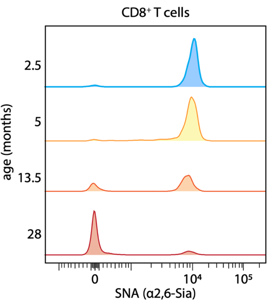 图1. 不同年龄小鼠体内CD8+ T细胞的唾液酸变化(源自论文)
