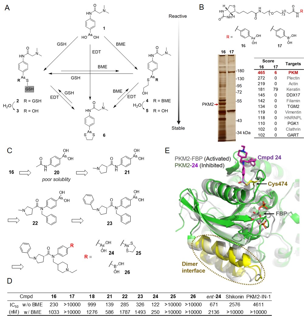J Med Chem | 谭立课题组与合作者报道基于三价砷共价弹头的新型PKM2抑制剂