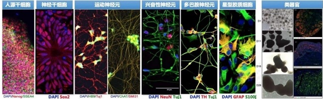 平台还建立了多种iPSC来源的三维脑区类器官与不同节段脊髓类器官体系,为神经发育研究及疾病建模提供更接近生理状态的体外模型。