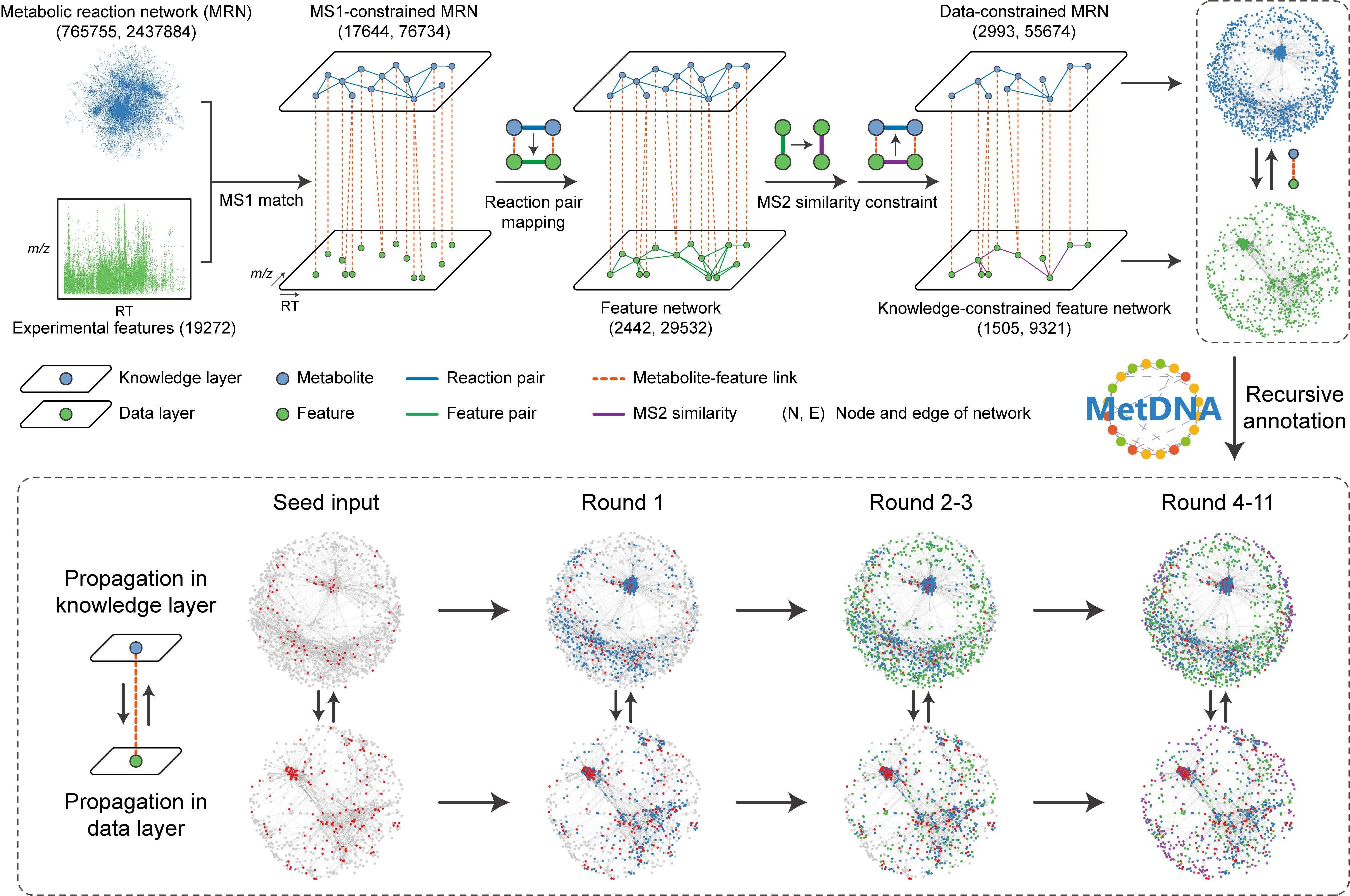 Nature Communications | 朱正江课题组发表基于知识与数据双层代谢网络驱动的代谢组规模化精准注释技术MetDNA3