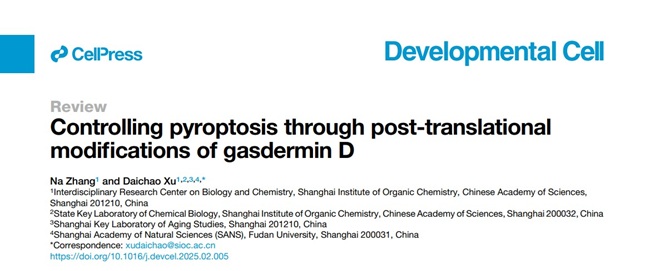 2025年4月7日,中国科学院上海有机化学研究所生物与化学交叉研究中心许代超研究员受邀在Developmental Cell发表了题为“Controlling pyroptosis through post-translational modifications of gasdermin D”的长篇综述。该论文全面系统地总结了GSDMD的蛋白翻译后修饰(PTM)在细胞焦亡中扮演的各种角色,并探讨了其在免疫反应和炎症相关疾病中的潜在治疗意义。