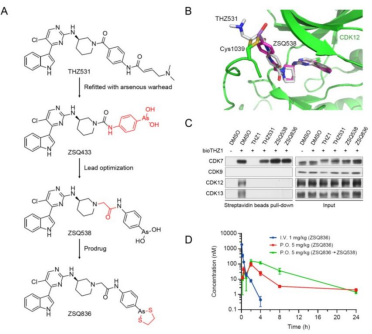 图1. 有机胂CDK12/13共价抑制剂ZSQ836的研制