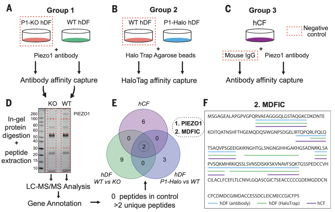 图1.亲和捕获质谱鉴定MDFIC是Piezo结合蛋白