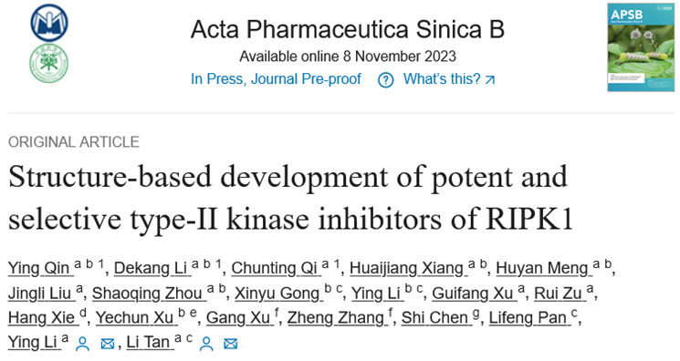 APSB | 谭立课题组与合作者报道新型RIPK1激酶抑制剂