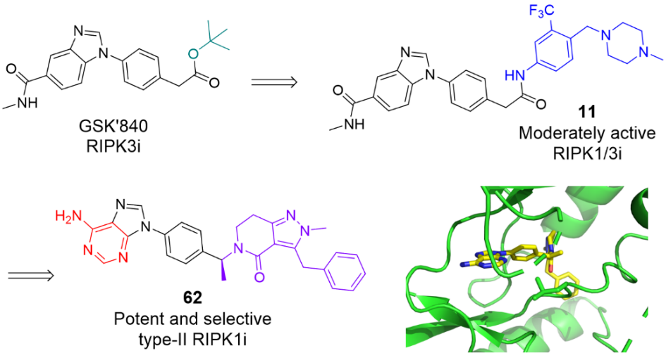 图1. 新型RIPK1 II型激酶抑制剂62的发现