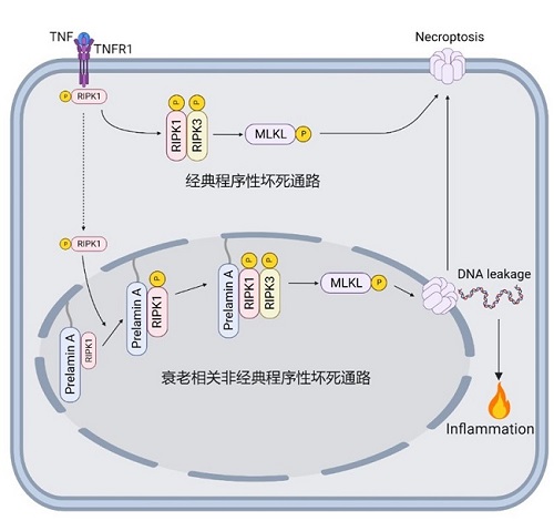 目前明确的程序性细胞死亡主要包括细胞凋亡、程序性坏死、焦亡等。在特定情况下,经典的细胞死亡往往会以非经典通路的形式发生。例如早期认为程序性坏死由RIPK1介导,后来发现ZBP1也可以介导。程序性细胞死亡的形态特征以质膜破裂和细胞核肿胀为特征,细胞核保持相对完整。在经典的程序性细胞死亡中,鲜有核膜破裂的现象。是否存在以核膜破裂为特征的程序性坏死通路是领域内的空白。我们最近的一项研究发现了一种“细胞核程序性坏死”通路,首次报道了毒性蛋白Prelamin A驱动的发生在细胞核内的细胞坏死通路,并证明该通路的激活导致细胞核膜的破裂和DNA的泄露,最后引起细胞死亡和炎症。重要的是,我们通过遗传学实验证明这种细胞核坏死是驱动以Prelamin A累积为特征的早衰疾病的重要原因(Nat Cell Biol, 2024)。实验室将继续着力于揭示非经典的细胞死亡通路,并研究其在人类疾病中的重要作用,为复杂疾病的干预明确治疗的新手段。