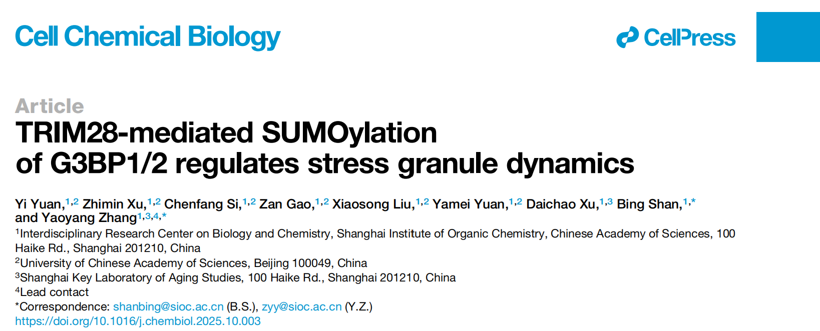Cell Chem Biol | 张耀阳课题组开发lcFAX方法揭示TRIM28介导的SUMO化修饰调控应激颗粒动态性新机制