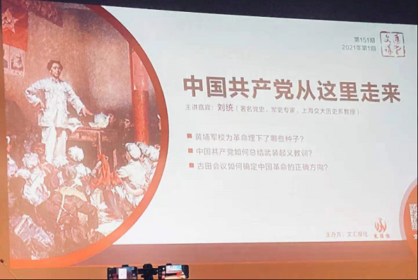 2021年3月27日,交叉中心党总支赴上海图书馆参加文汇讲堂举办的题为《中国共产党从这里走来》讲座,主讲人刘统教授。演讲主题脱胎于刘统2020年底出版的《火种:寻找中国复兴之路》,这是一本献给中国共产党建党100年的著作。刘统教授从 “黄埔军校为革命埋下的种子、中国共产党总结武装起义的教训和古田会议如何确定中国革命的正确方向”三大块内容与听众分享。刘统教授说,黄埔军校不仅是国民革命军的摇篮,也是中国工农红军的摇篮。政治委员制度首先产生于黄埔军校。就南昌起义而言,中国共产党至少总结了三大教训。第一,必须旗帜鲜明;第二必须建立完善的党组织;第三,要明确发展的路线,明确无产阶级的旗号。而古田会议则体现了毛泽东对中国革命的思考。而《火种:寻找中国复兴之路》这本书,从《辛丑条约》讲起,到《新青年》,新文化、马克思主义传播、中国共产党的成立到黄埔军校的建设,南昌起义第一枪,再到秋收起义、井冈山、转战闽西,古田会议指明方向,终结在“星星之火,可以燎原”。通过此次活动,党员们对于党史的认识更为深刻,为坚定自己的信念迈出了坚实的一步。
