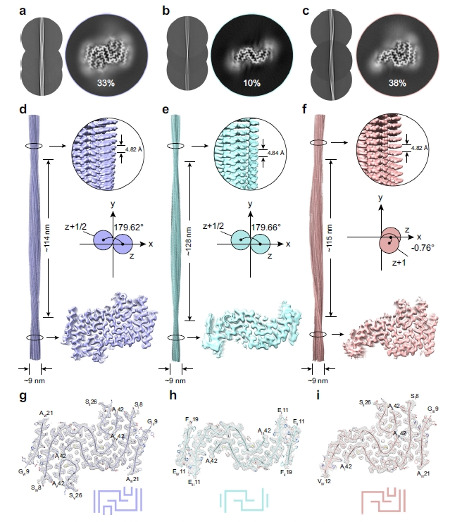 Figure 2. Cryo-EM structure determination of three major polymorphs of Aβ42-4b fibrils